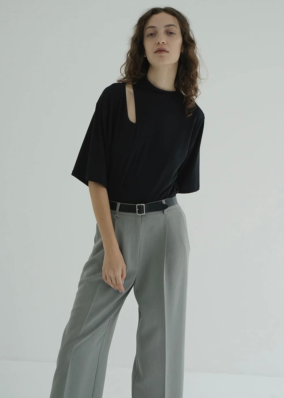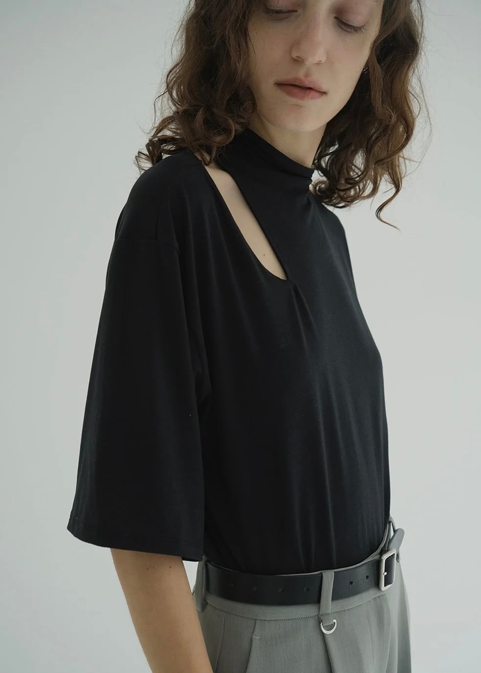 レーヨン混の落ち感のある素材を使用したスラッシュTシャツ。