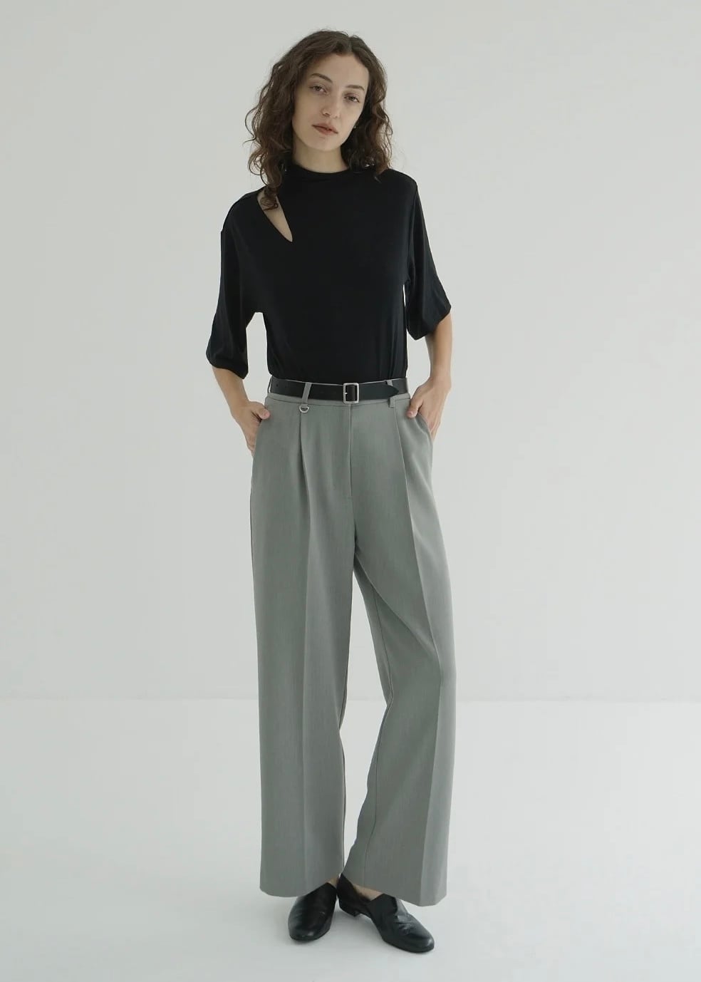 前から後ろにかけてぐるっと生地をドレープさせ、ニュアンスのある襟ぐりを表現しました。夏に楽に着用できる、CLANEらしい一枚です。