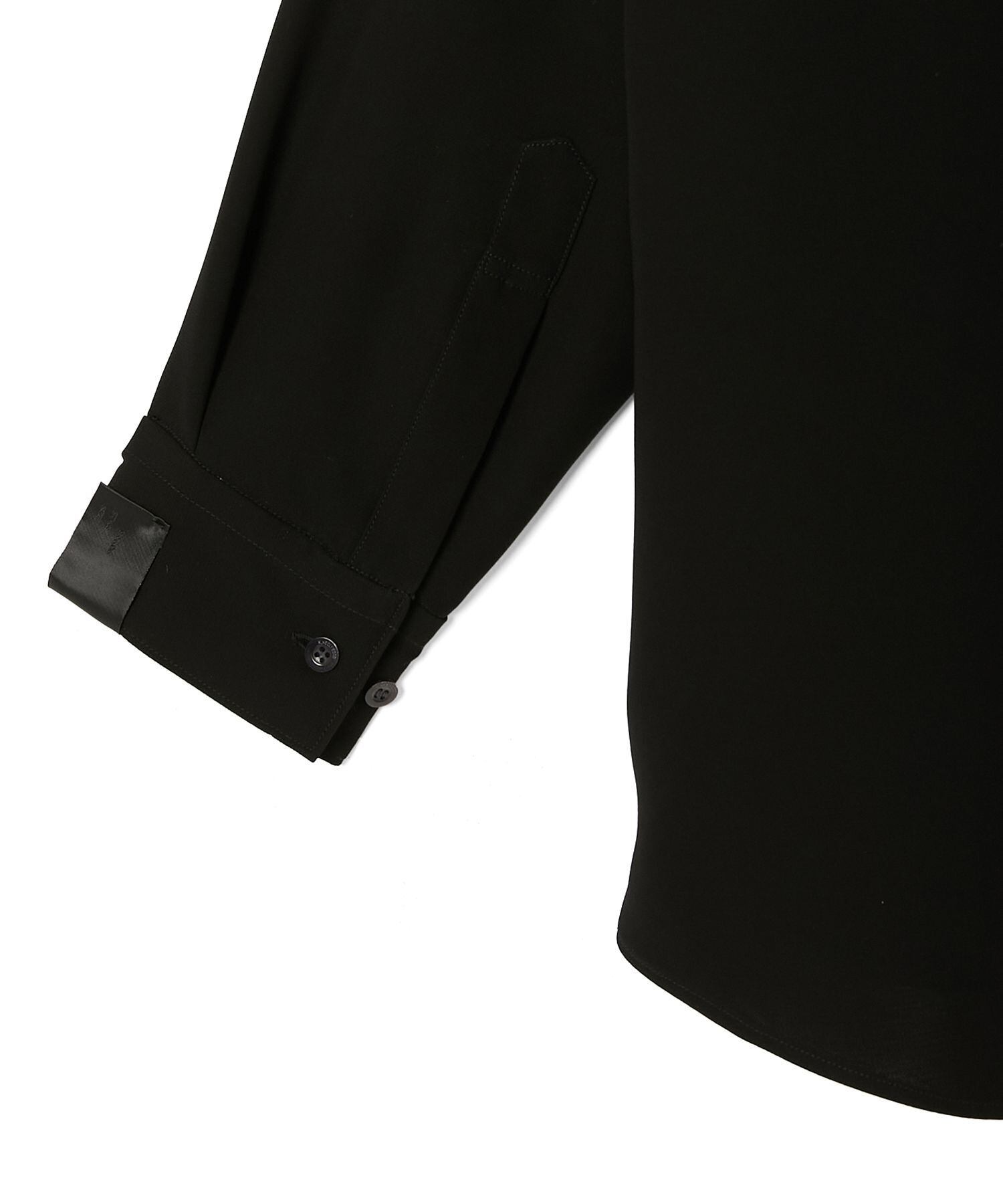 ・袖周りを広くとったドロップショルダー。フロントボタンの間隔を広くとることで、ソリッドな印象に。左袖には、N.HOOLYWOOD COMPILEのアイコンであるブラックのブランドネームを配置。