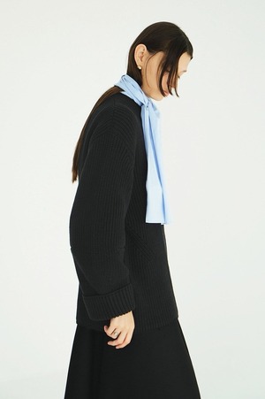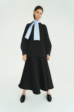 CLANEらしいオーバーなサイズ感と、構築的な袖のシルエットに拘った重厚感のある上品なニット。