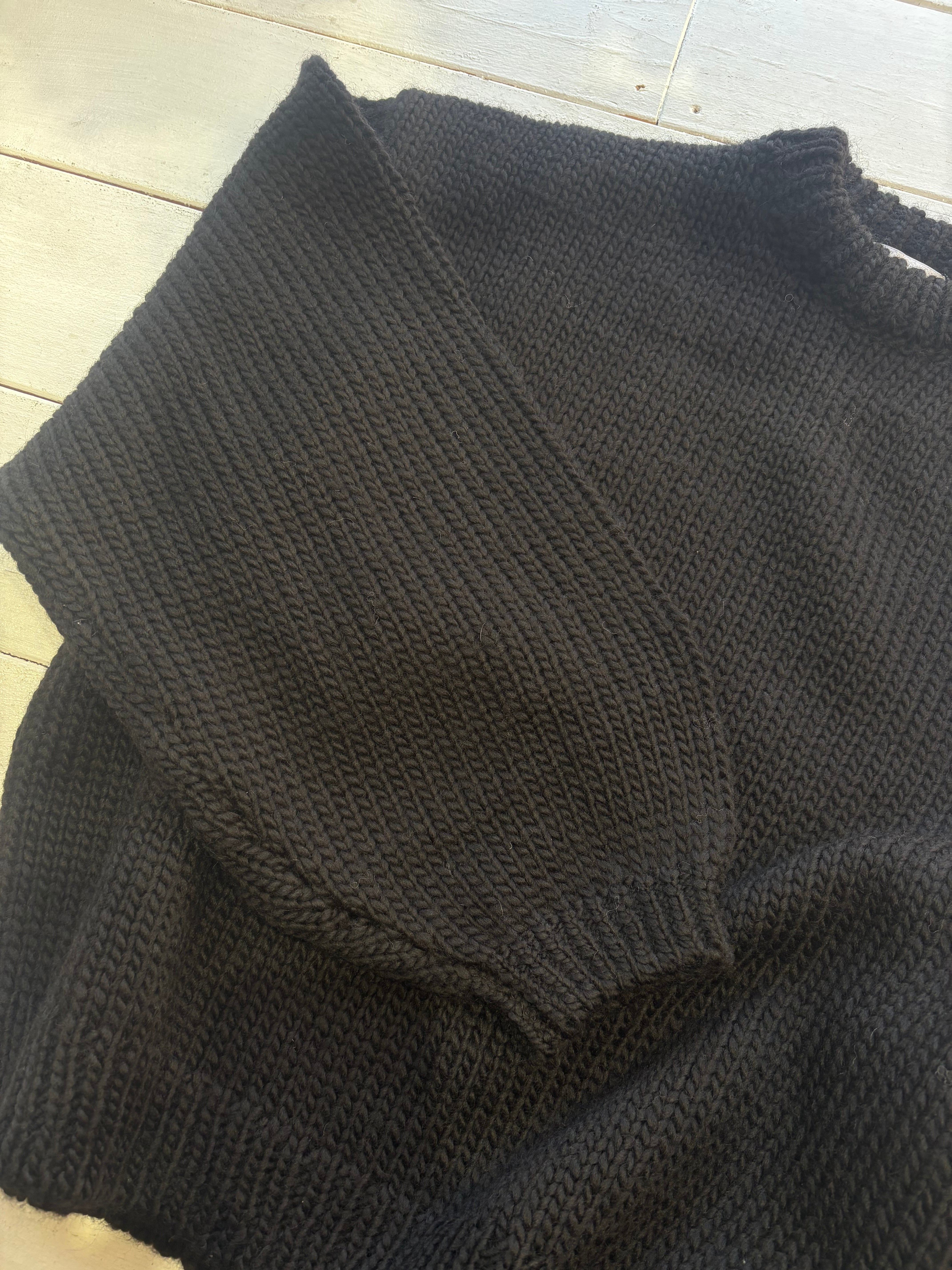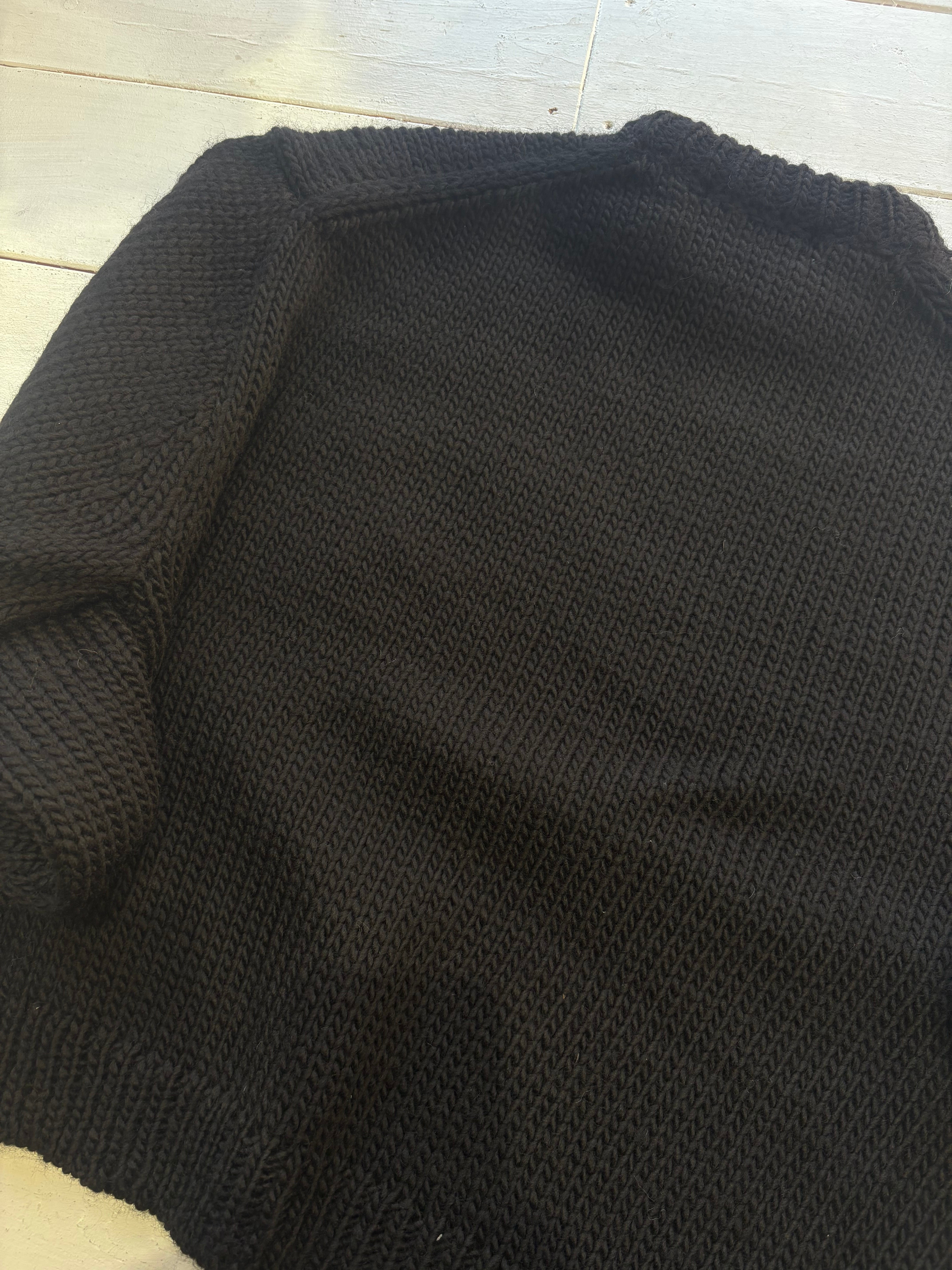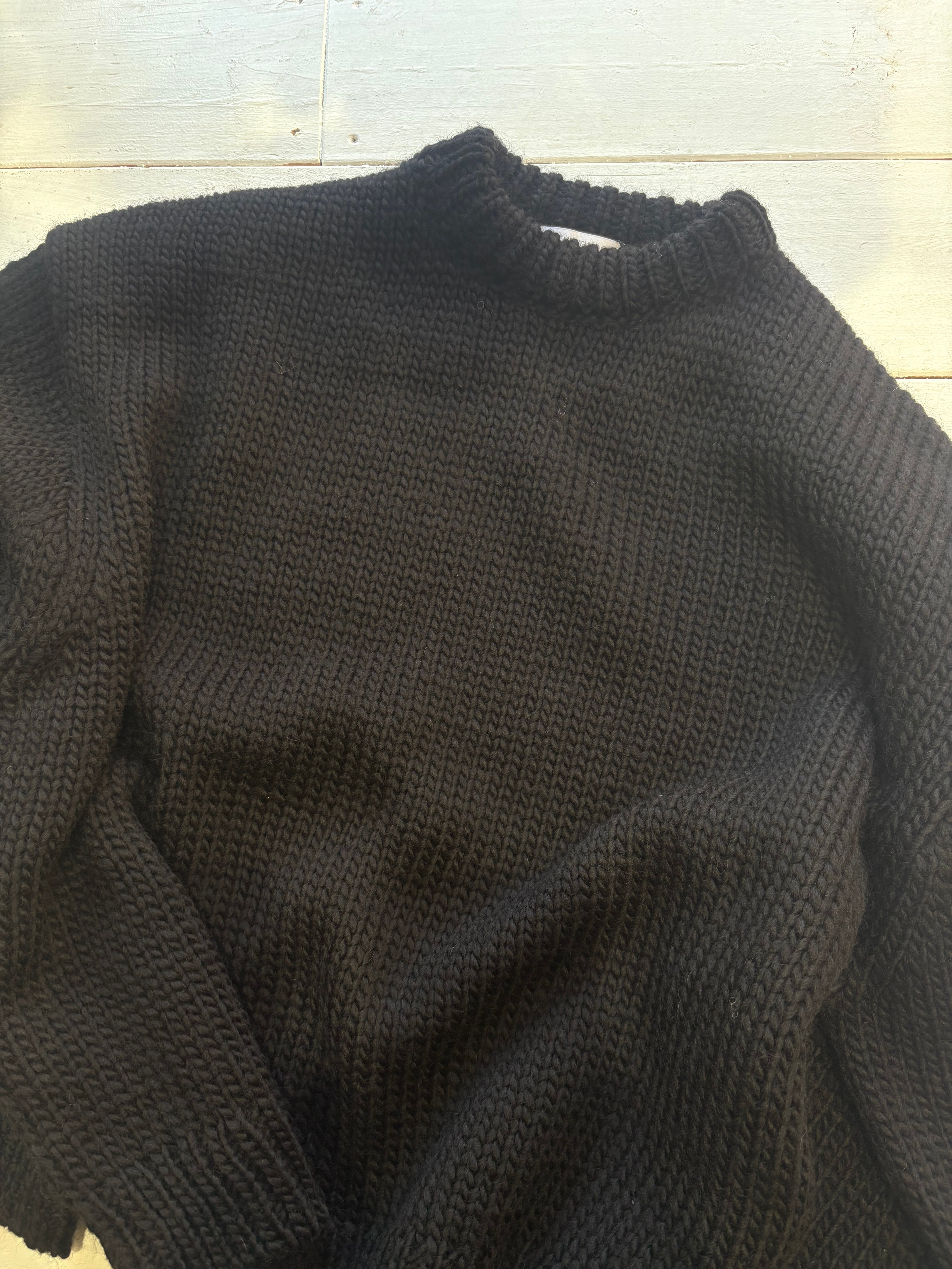 手編みのような1ゲージの糸で編んだショート丈のニット。