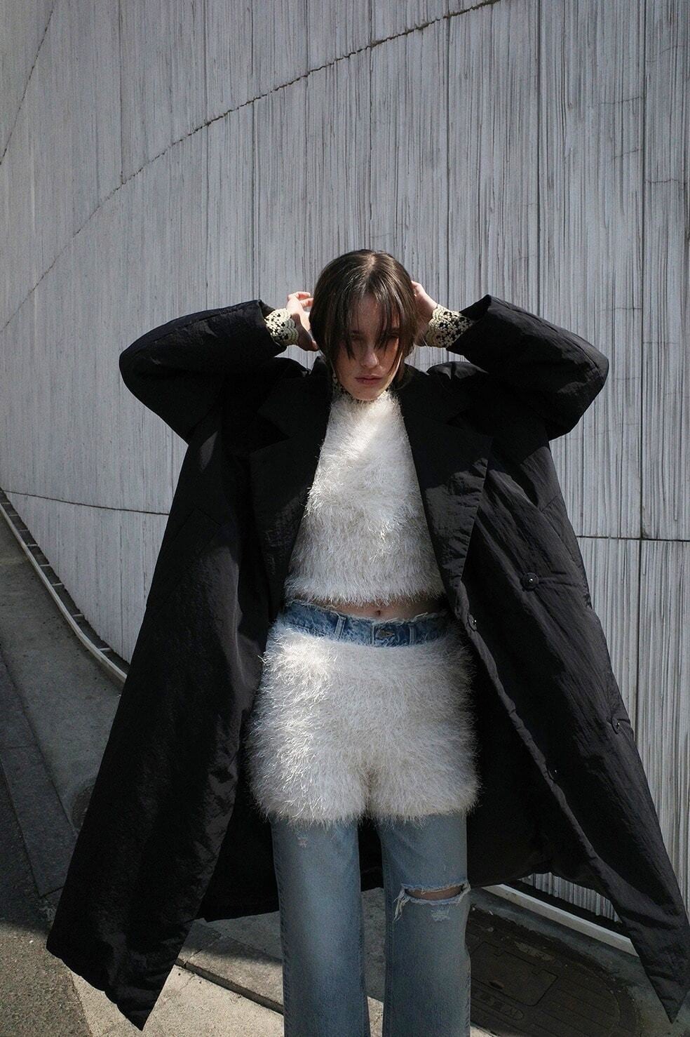 長すぎない着丈設定で、低身長の方にもバランスよく着ていただける点もポイントです。