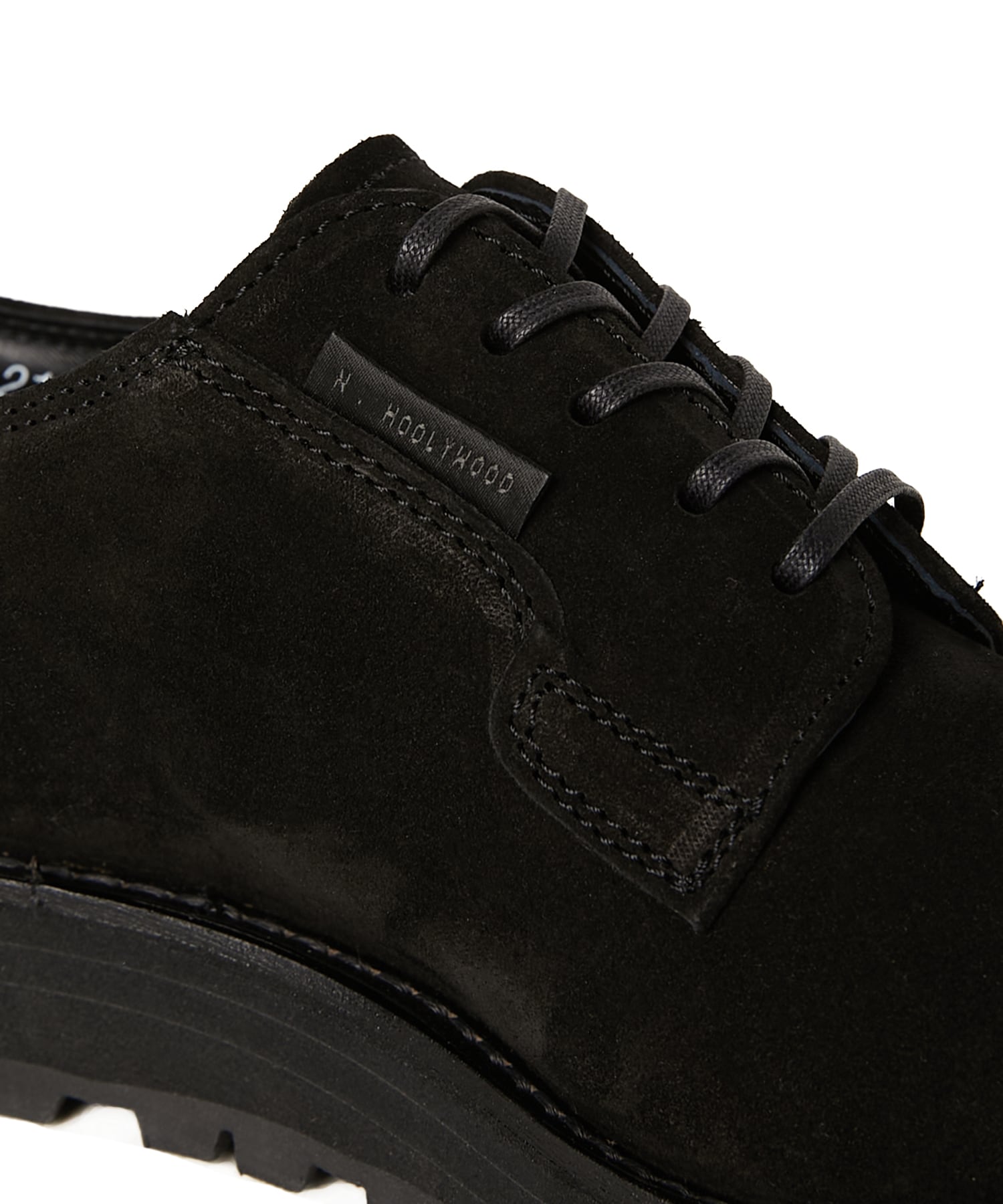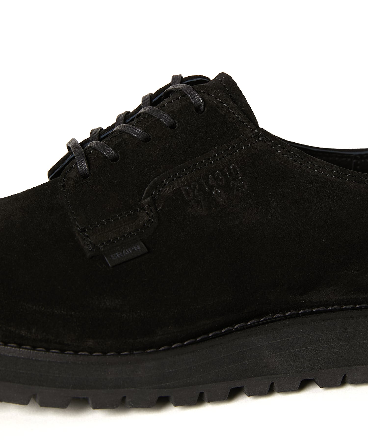 ・アメリカの郵便配達員用のサービスシューズとして生まれ、現在にいたるまでの約30年、ジャパンメイドで生産するロングセラーモデルをベースに製作。頑丈なステッチとせり出したコバ、ロウ引きのシューレースを組み合わせ、無骨ながらクラシックな印象に。アッパーにはN.HOOLYWOOD COMPILEのネームタグを配置し、本コラボレーションのモデルナンバーを両サイドに刻印。