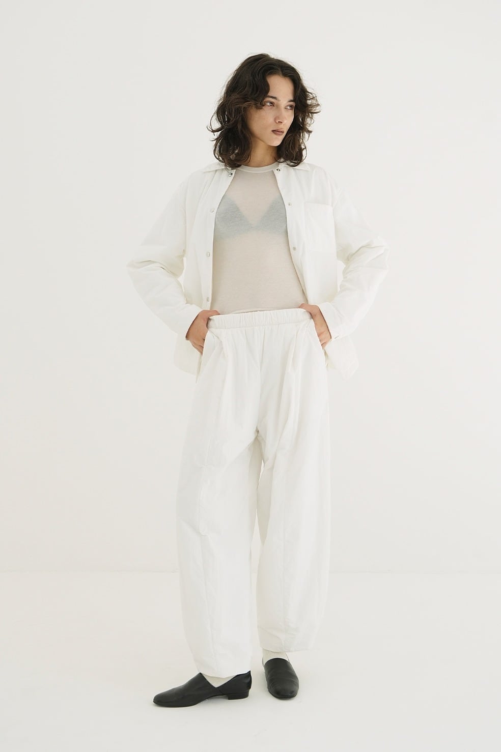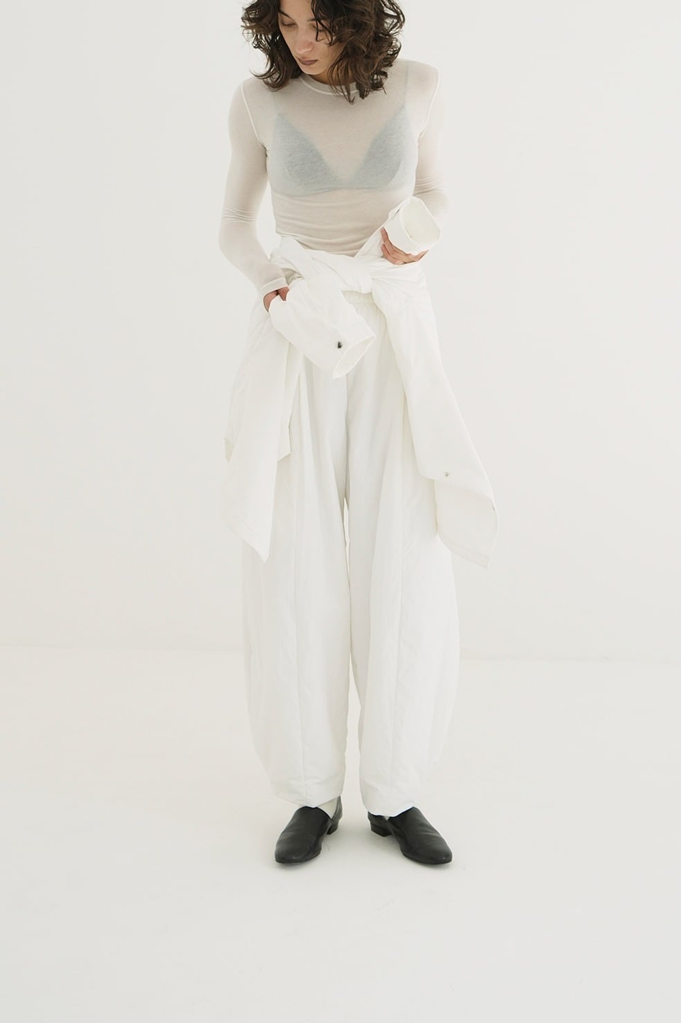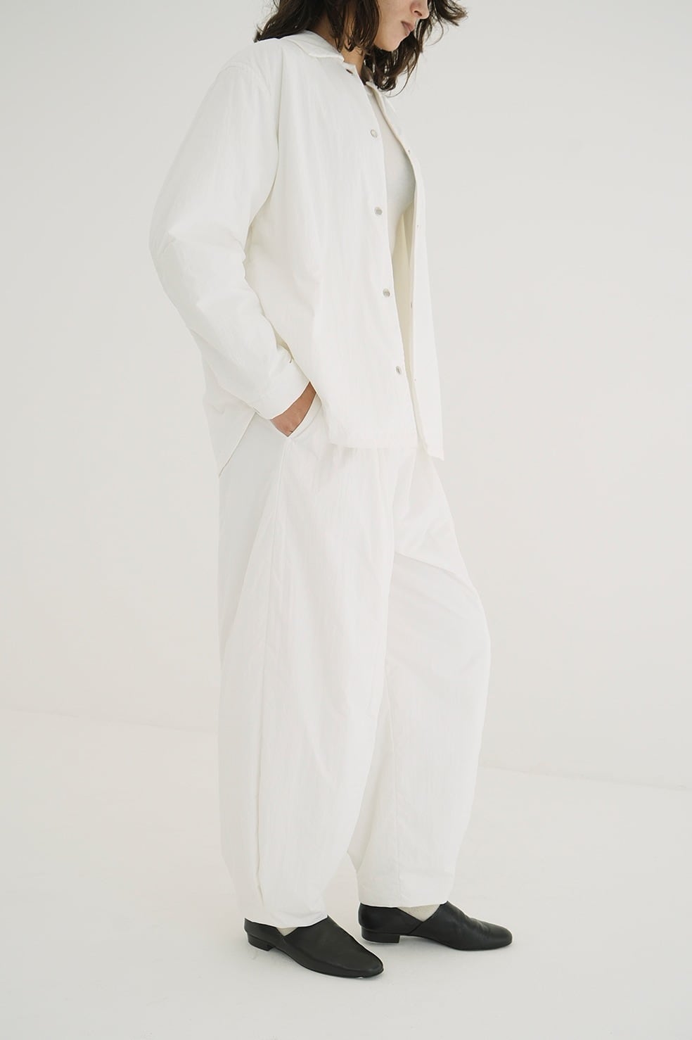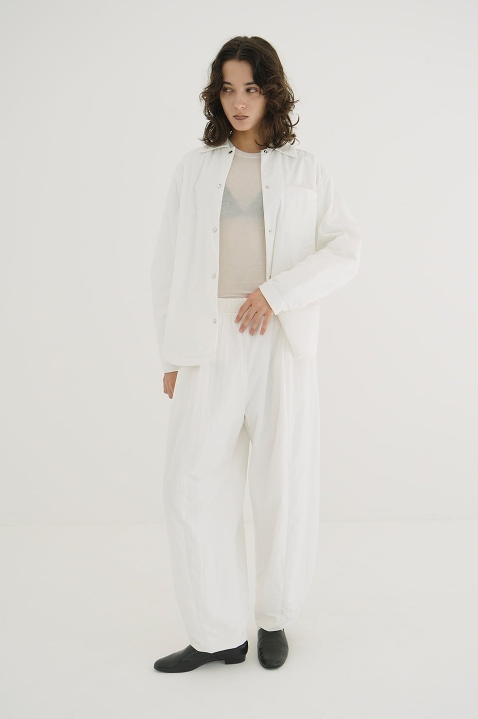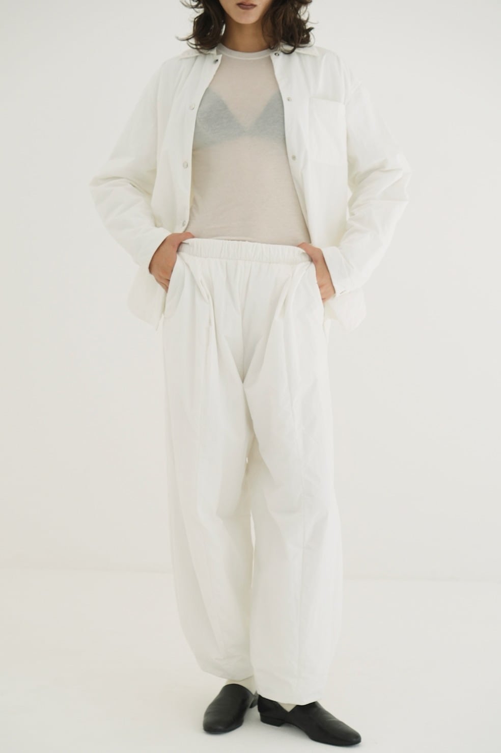 薄手の中綿を内蔵し、深めのタックを施すことで、すっきりとしたバランスに仕上げた中綿パンツ。