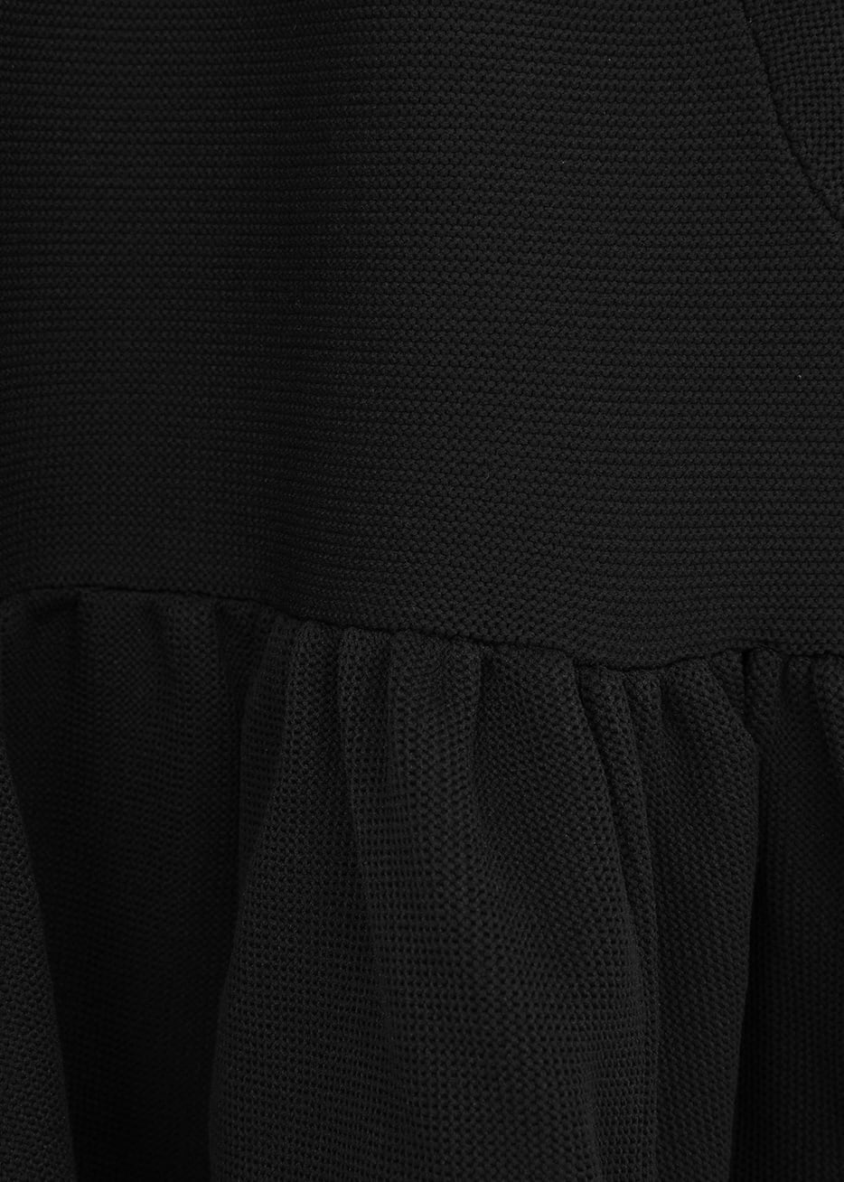 身体のラインを程よくカバーしながら華やかに映えるデザインで、オンオフ問わず幅広いシーンで活躍。シンプルなボトムと合わせるだけでモードな印象に仕上がる、CLANEらしいトップスです。