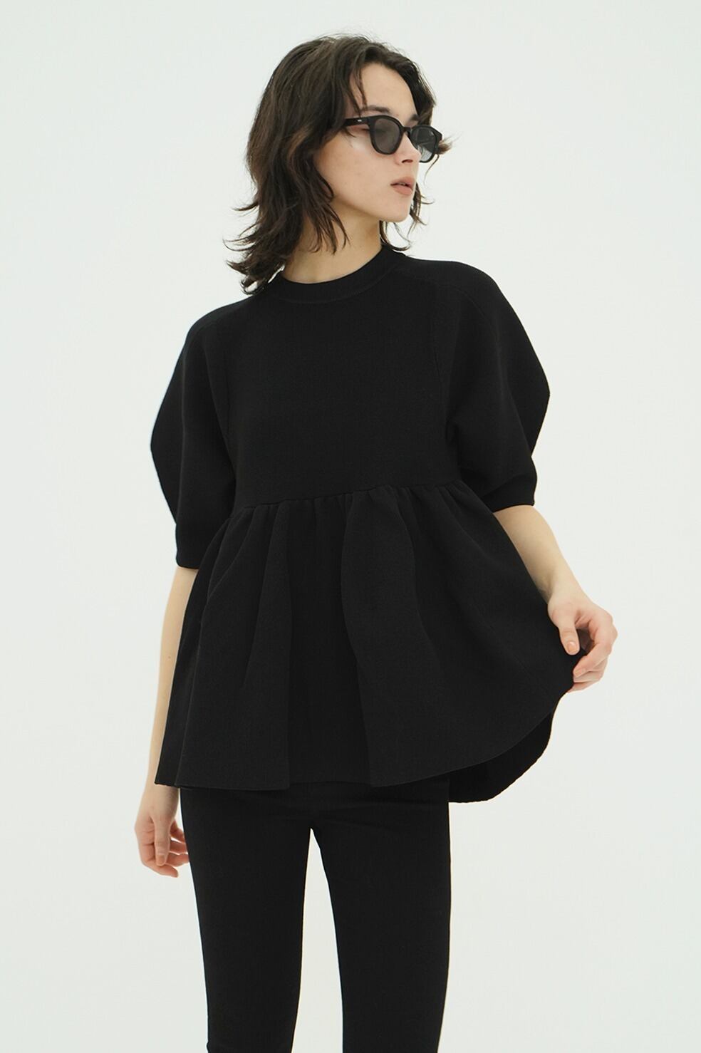 CLANE : PEPLUM HALF SLEEVE KNIT TOPS