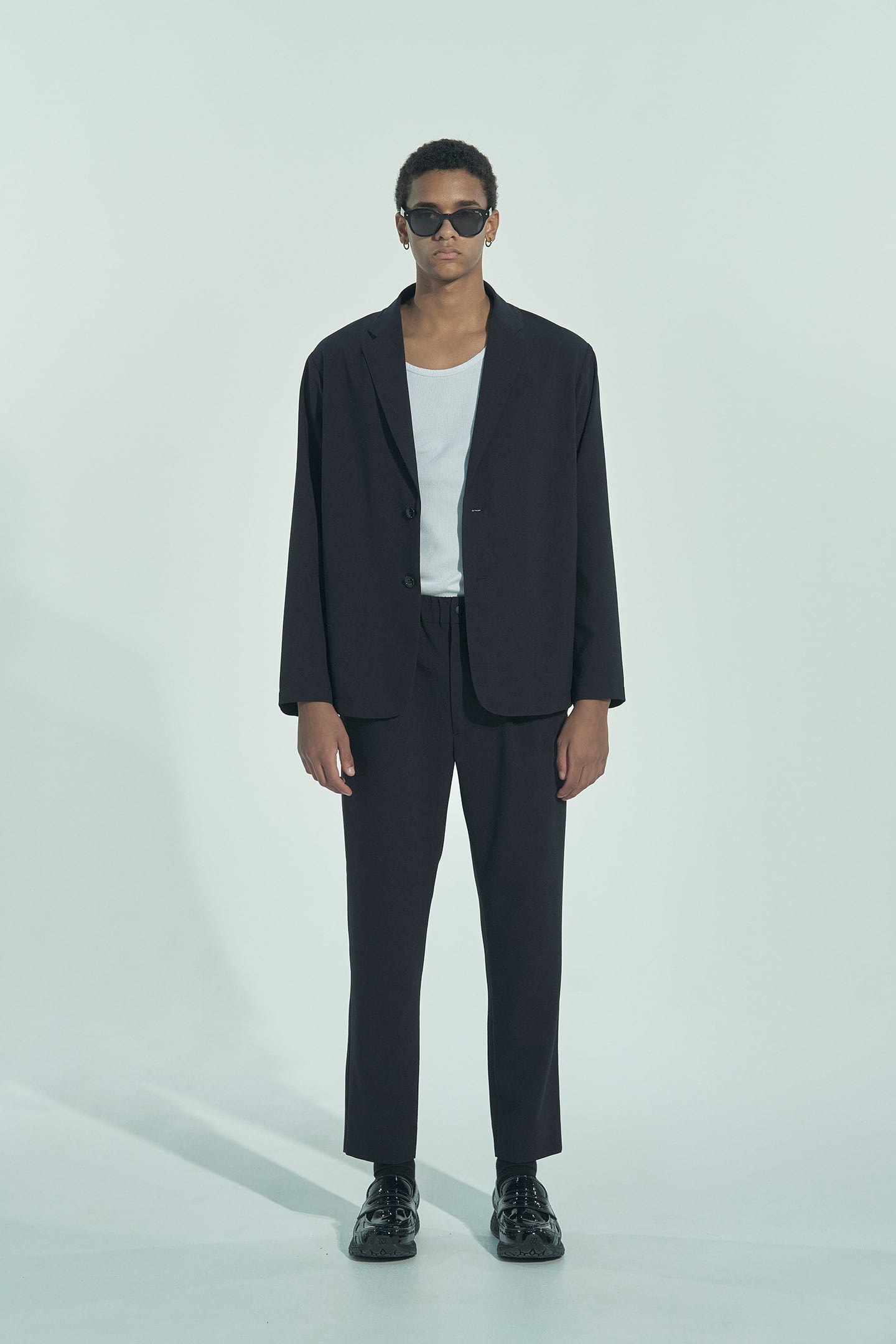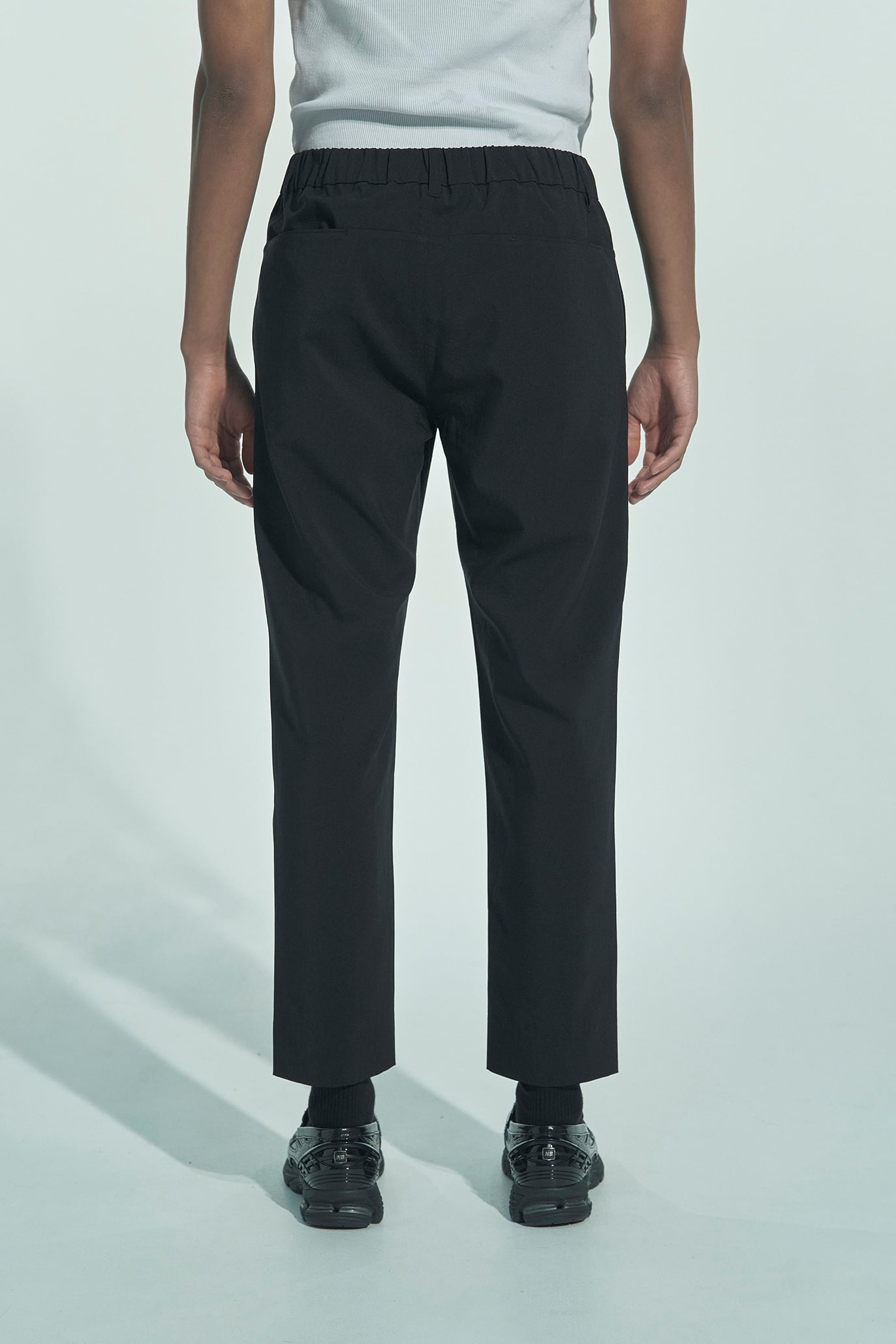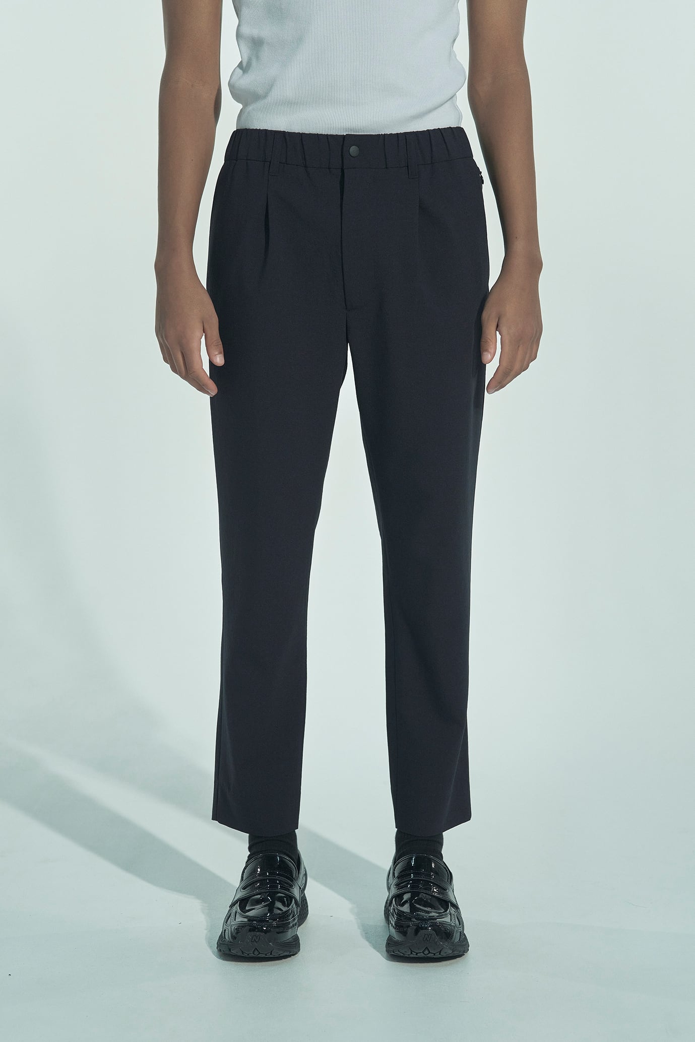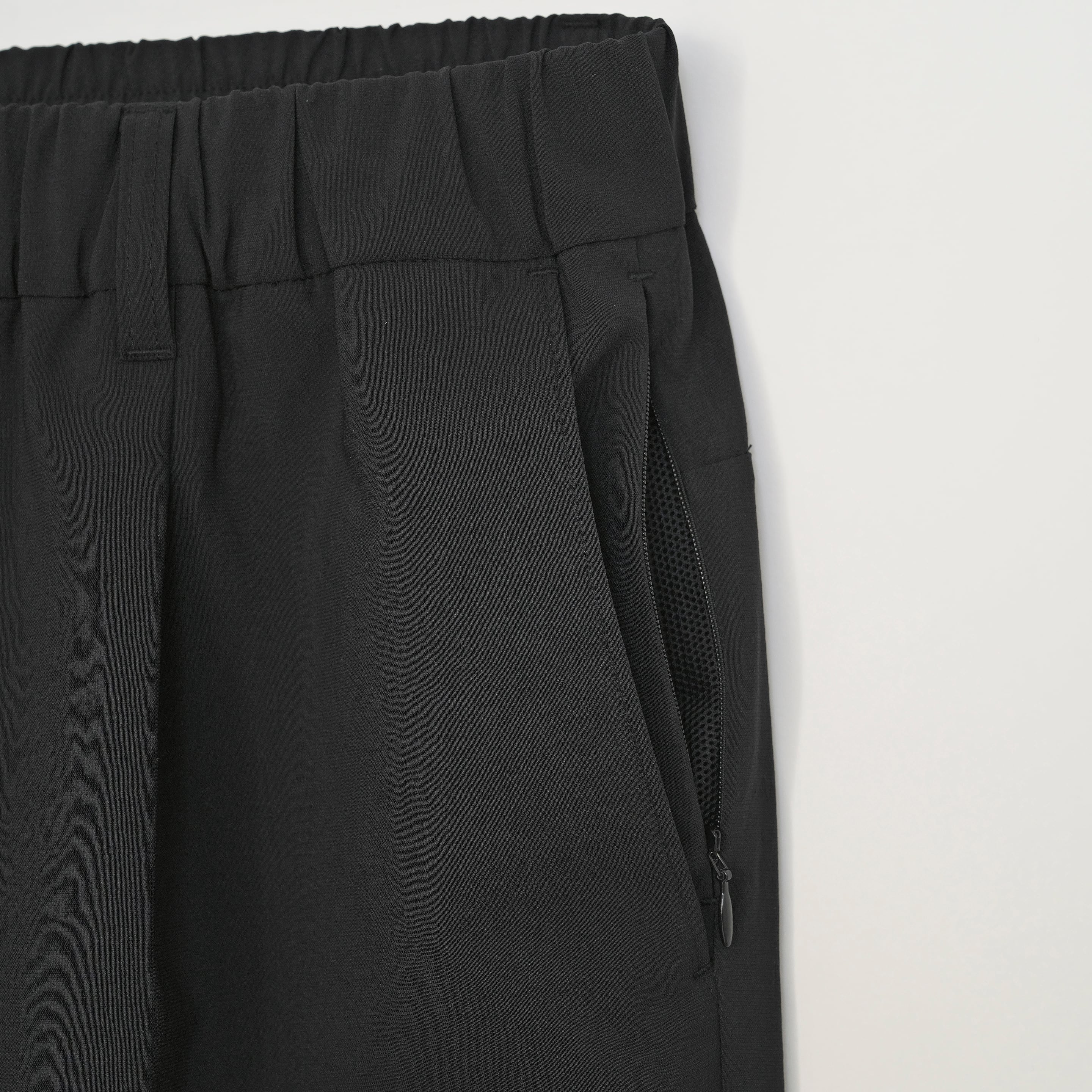 強撚ポリエステルにワッシャー加工を施すことで、リネンのようなナチュラルで表情豊かな風合いを実現したアンクル丈テーパードパンツ。シワになりにくく軽量で、通気性の良い素材は暑い季節でも快適に着用でき、速乾性・撥水性も備えているため、汗ばむ日や突然の雨でも安心です。ウエストはゴム+紐仕様でフィット感を自由に調整可能。ポケットの内側はメッシュ仕様、さらにファスナー付きのコインポケットも備え、実用性にも優れています。同素材のジャケットや半袖シャツとのセットアップで統一感のあるスタイリングを楽しむことができ、旅行や出張などの持ち運びにも便利。上品な見た目とテーパードシルエットにより、日常のコーディネートにも自然に馴染み、季節を問わず活躍する一着です。