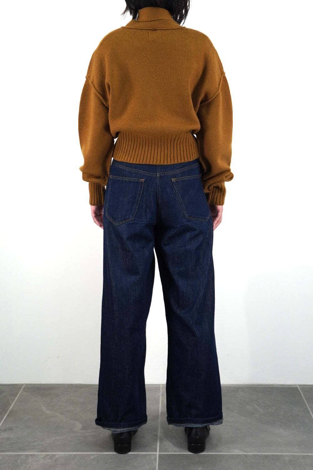 丈と、ボリュームのある大きめ釦、巻いても垂らしても使える付属のニットベルトが特徴